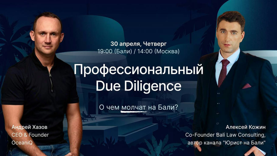 OceaniqОнлайнКак не потерять деньги на Бали: Due Diligence для агентов30 апреля в 11:00
