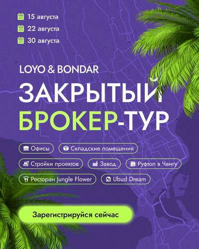Маршрут по ключевым локациям компании: офисы, склады, производство, рестораны и топовые объекты. В программе — экскурсии по отделам, знакомство с командами, инсайды о бизнес-процессах и эксклюзивные детали. Возможность узнать, как устроены продажи, комплектация, логистика, финансы и операционка изнутри. Покажем рестораны, прачечные, швейное и мебельное производство, покрасочный цех, заводы по окнам и дверям. Расскажем о новых проектах, коммерческих зданиях, виллах и топовых локациях на Буките, в Чангу, Убуде и на Нуса Пенида. Отличный шанс завести полезные знакомства, получить инсайды, найти новые точки роста и заработать на эксклюзиве.